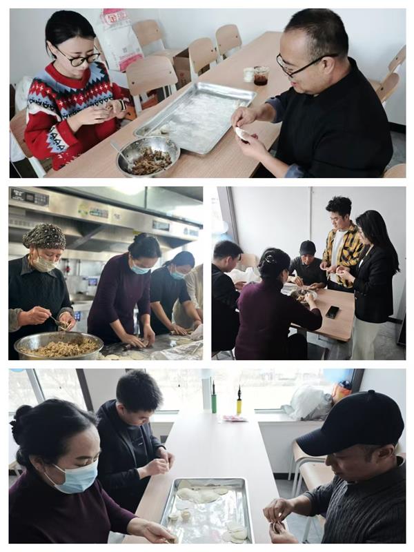 集團領導班子成員也一同加入到包餃子的行列中,一邊包餃子一邊與年輕員工分享冬至習俗:“冬至不端餃子碗,凍掉耳朵沒人管。今天咱們多包點,讓每個人都吃得暖暖和和!”